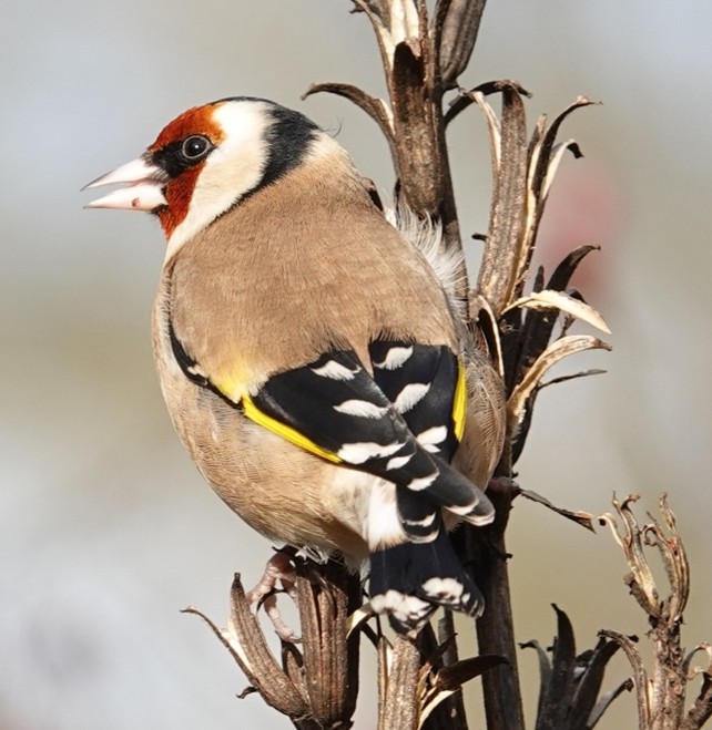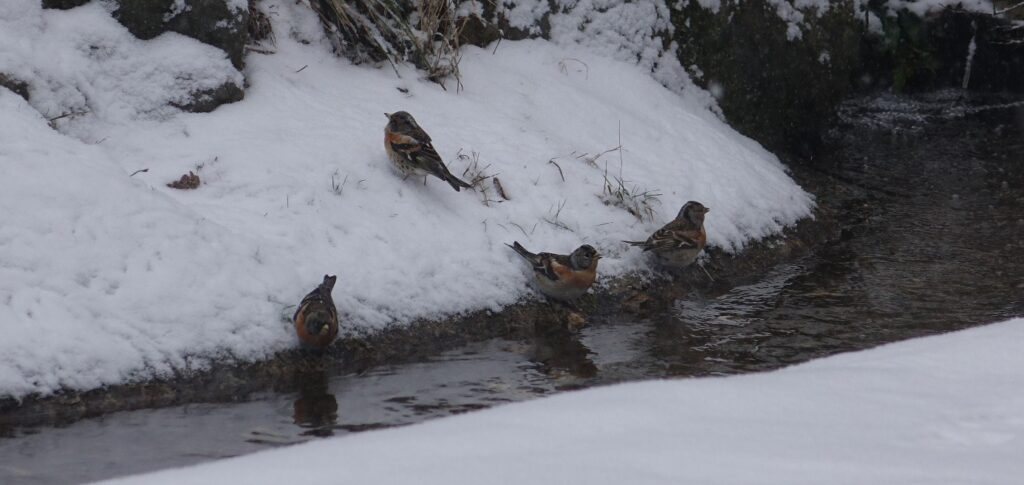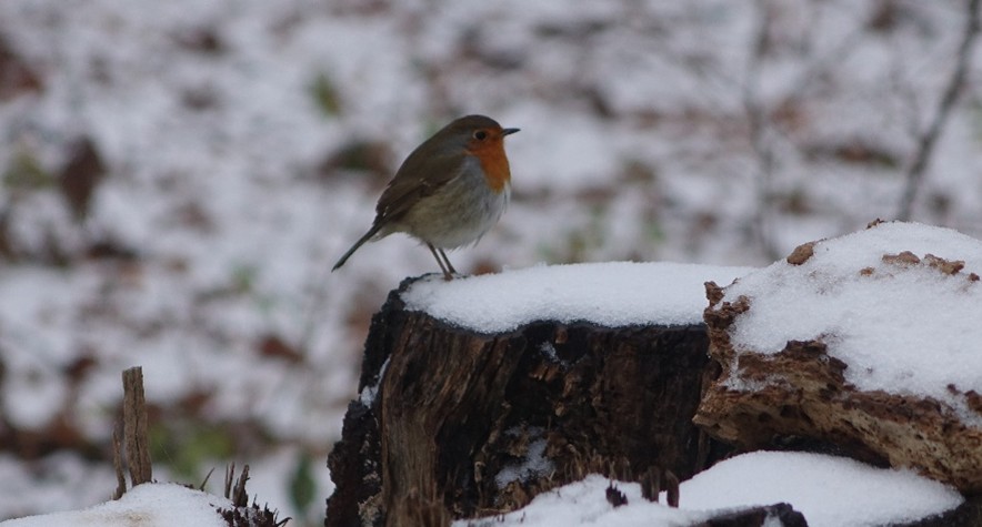 De meeste bomen in de tuin zijn nu hun bladeren kwijt, maar de beuken en eiken zijn hier en daar nog een beetje getooid in herfstkleur. We zien geen insecten meer, maar de vogels laten zich gemakkelijker zien omdat het bladerdek grotendeels verdwenen is. Nu zijn er ook wintergasten zoals de Keep, het noordelijke ‘neefje’ van de Vink. Ze komen graag drinken aan de bron van de bergbeek. Koperwieken zijn op zoek naar de bessen. Met wat geluk hoor je de eerste roffels van de Grote Bonte Specht en de melodieuze zang van de Zanglijster. Het Roodborstje kun je met gemak elke dag zien en horen, net als de rondtrekkende Staartmezen. De IJsvogel wordt soms gezien bij de vijver, op zoek naar een visje.