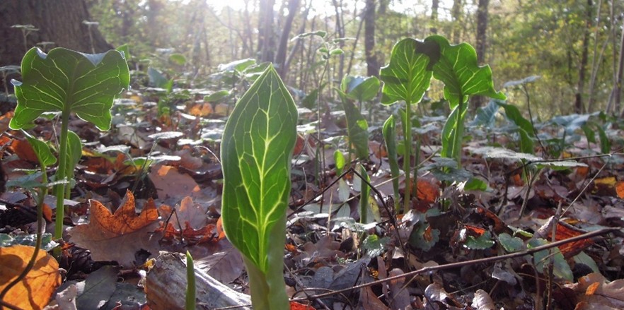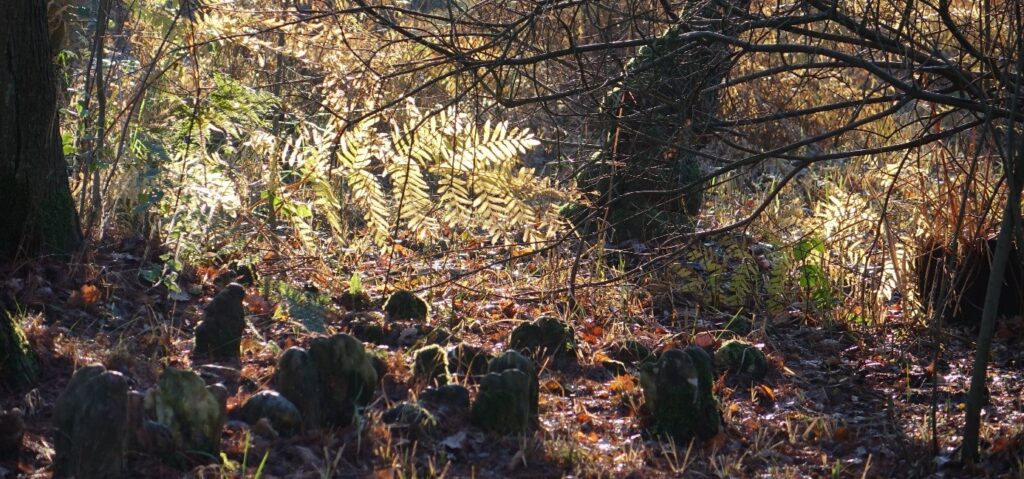 Mossen en korstmossen worden nu ook meer opgemerkt, evenals sommige varens die nog steeds groen zijn zoals Tongvaren, Gewone eikvaren, Stijve naaldvaren en de kleine Steenbreekvaren. Wijfjesvaren, Mannetjes varen, Zachte naaldvaren daarentegen verliezen uiteindelijk wel hun blad in de winter. Voordat de Koningsvaren en de Adelaarsvaren bovengronds afsterven tonen zij eerst nog hun mooie herfstkleur, alsof de zomer er nog even in nagloeit.
