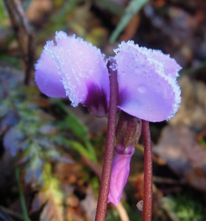 De donkere dagen staan voor de deur. Na de zonnewende gaan de dagen gelukkig lengen en weldra zullen de eerste Sneeuwklokjes verschijnen. Toch als je goed zoekt op het Alpinum kun je nu al twee andere soorten bloeiende bloembollen zien: Cyclamen coum en Cyclamen hederifolium.