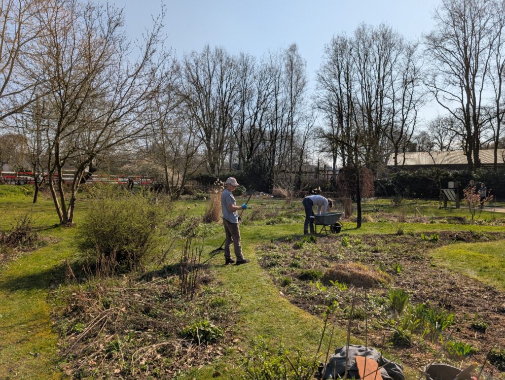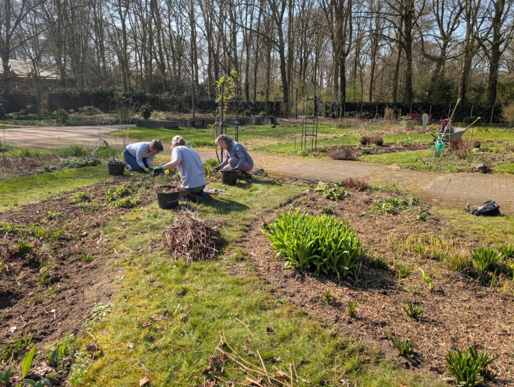In de borders van de Tuin van de Toekomst zijn we aan de lenteschoonmaak begonnen. Oud er uit, ruimte voor nieuw leven.
