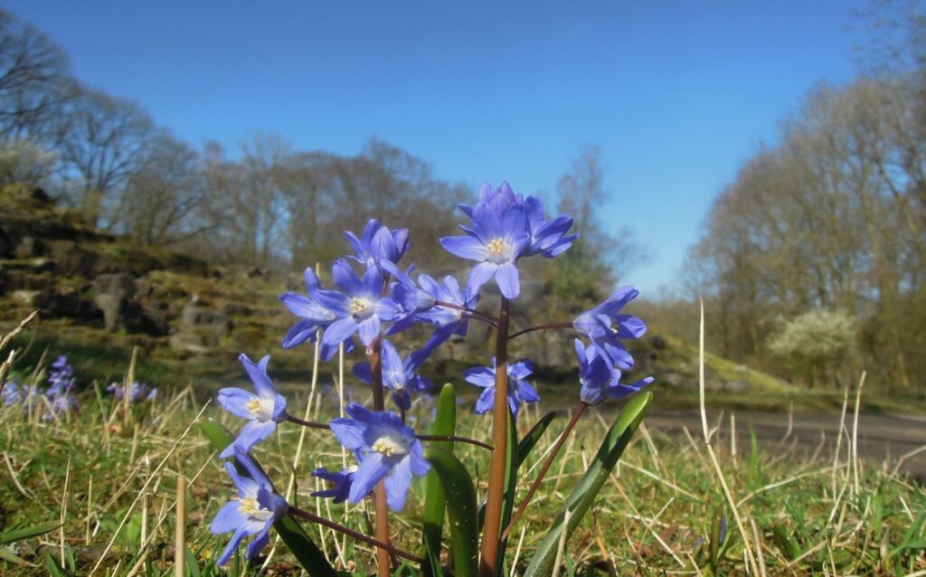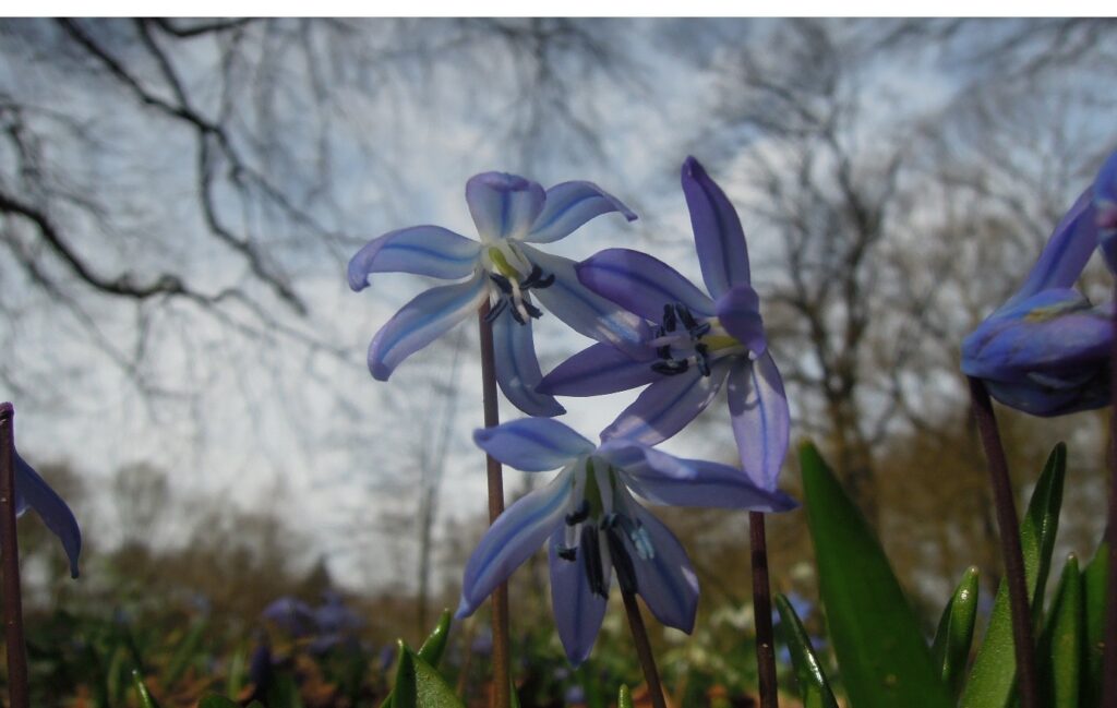 We verlaten de gele sleutelbloemen maar blijven bij de hemel op aarde en komen bij de sterren die hemelsblauw kleuren. Het zijn stervormige voorjaarsbloeiers van het geslacht Scilla; in het Nederlands: Sterhyacint. In de Hortus groeien minstens drie soorten: Grote sneeuwroem, Middelste sneeuwroem en Oosterse sterhyacint.