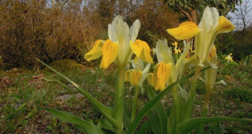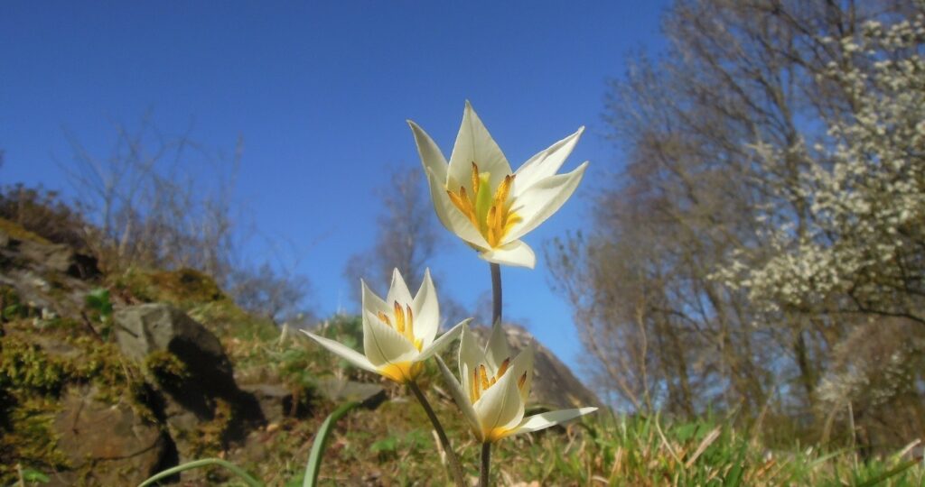 Van nature groeien deze sterhyacinten ver weg in gebieden als Turkije en Centraal-Azië. Dit zijn zeker niet de enige soorten in de Hortus die uit die contreien komen. Wat te denken van de Turkestaanse tulp (Tulipa turkestana) of de Gewei-iris (Iris bucharica)? Een andere prachtige niet-inheemse soort is de Hondstand (Erythronium dens-canis). Ook deze groeit van nature in genoemde contreien, maar komt dichterbij ook al in het bergachtige zuiden van Europa voor. De Californische hondstand (Erythronium californica) komt uit Californië. Net als de Europese begint de bloei later in de maand of begin april. Beide hondstanden worden helaas vaak gestolen en het is de nog maar de vraag of ze dit jaar nog te bewonderen zijn. We hebben nog de plaatjes…
