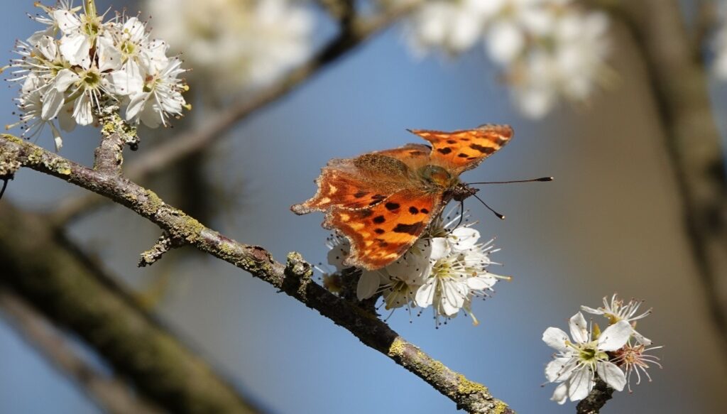 In de maand maart zijn tot nu 11 dagvlinders gezien op basis van de observaties die zijn gerapporteerd aan waarneming.nl. De Citroenvlinder is verreweg het meest gezien, gevolgd door Dagpauwoog en Gehakkelde aurelia. De Kleine vos werd vroeger ook vaak gezien, maar nu al negen jaar niet meer. Landelijk gezien was het een heel algemene soort, terwijl de Grote vos een grote zeldzaamheid was. Met de Grote vos gaat het tegenwoordig juist een stuk beter. Deze werd pas in maart 2020 voor het eerst gezien in de Hortus en is sindsdien opnieuw enkele jaren in maart gezien. De laatste keer was zelfs al in februari dit jaar. Volgens de Vlinderstichting is de achteruitgang van de Kleine vos in ons land net zo moeilijk te verklaren als de grote en snelle toename van de Grote vos.