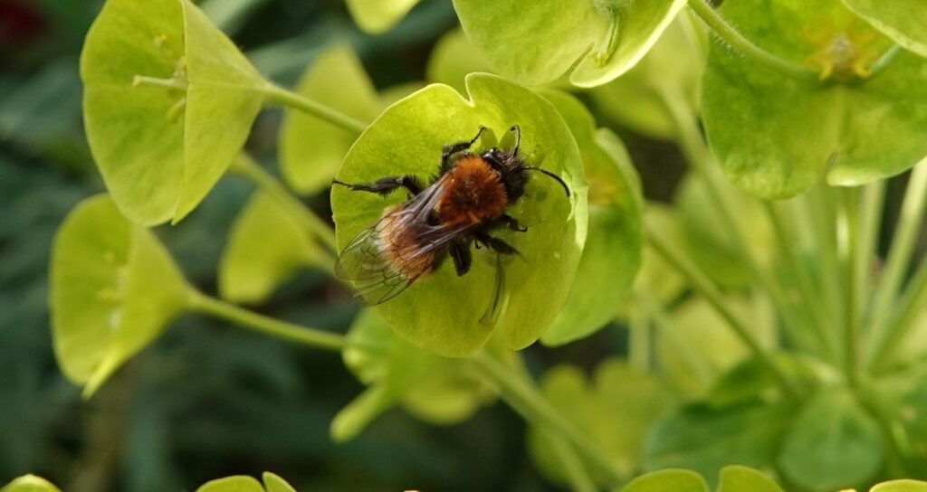 De benaming “vos” wordt ook gebruikt voor een zandbij die reeds in maart in de Hortus vliegt: het Vosje ( Andrena fulva). Het Vosje heeft wel wat weg van een hommeltje. Het is een cultuurvolger en inmiddels in menig stedelijk plantsoen of tuin door geheel Nederland te zien (wildebijen.nl).