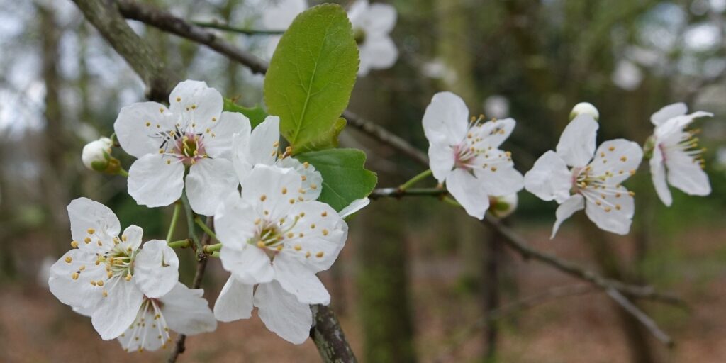 Maart kent al veel meer voorjaarsbloeiers dan februari, zeker naar het einde van de maand toe. Veel van deze voorjaarsbloeiers groeien van nature in twee dynamische, voedselrijke milieus: aan de voet van hellingen en in bossen langs beken. In de botanische tuin groeien ze in het gras of op het Alpinum, maar de meeste zijn te vinden in de rijkere bosgemeenschappen. Een viertal voorbeelden van zulke bosgemeenschappen vind je voornamelijk in de zuidelijke helft van de tuin. Hiervan neemt het Eiken-Haagbeukenbos het grootste oppervlak in. Al deze bostypen worden als het ware van beneden naar boven groen: de voorjaarsplanten komen tot bloei vóórdat de bomen in blad staan. Daar tegenover staan de armere bosgemeenschappen die als het ware van boven naar beneden groen worden. Deze met name door de Zomereik gedomineerde bostypen bevinden zich meer in de noordelijke helft van de tuin. Een bijzonderheid aldaar in het Klimop-Eikenbos is het voorkomen van Kroos of Kerspruim. Bij de aanleg van de tuin werd destijds dit perceel benoemd als ‘Kroosjesbos’. Kroosjes bloeien al in maart en mede vanwege het primeureffect waren ze geliefd. Vooral met de komst van jaarrond import van pruimen en rooipremies in de jaren ’60, ’70 is dit fruit in ons land zeldzaam geworden. Misschien zijn ze daarom wel in dit deel van de tuin aangeplant.